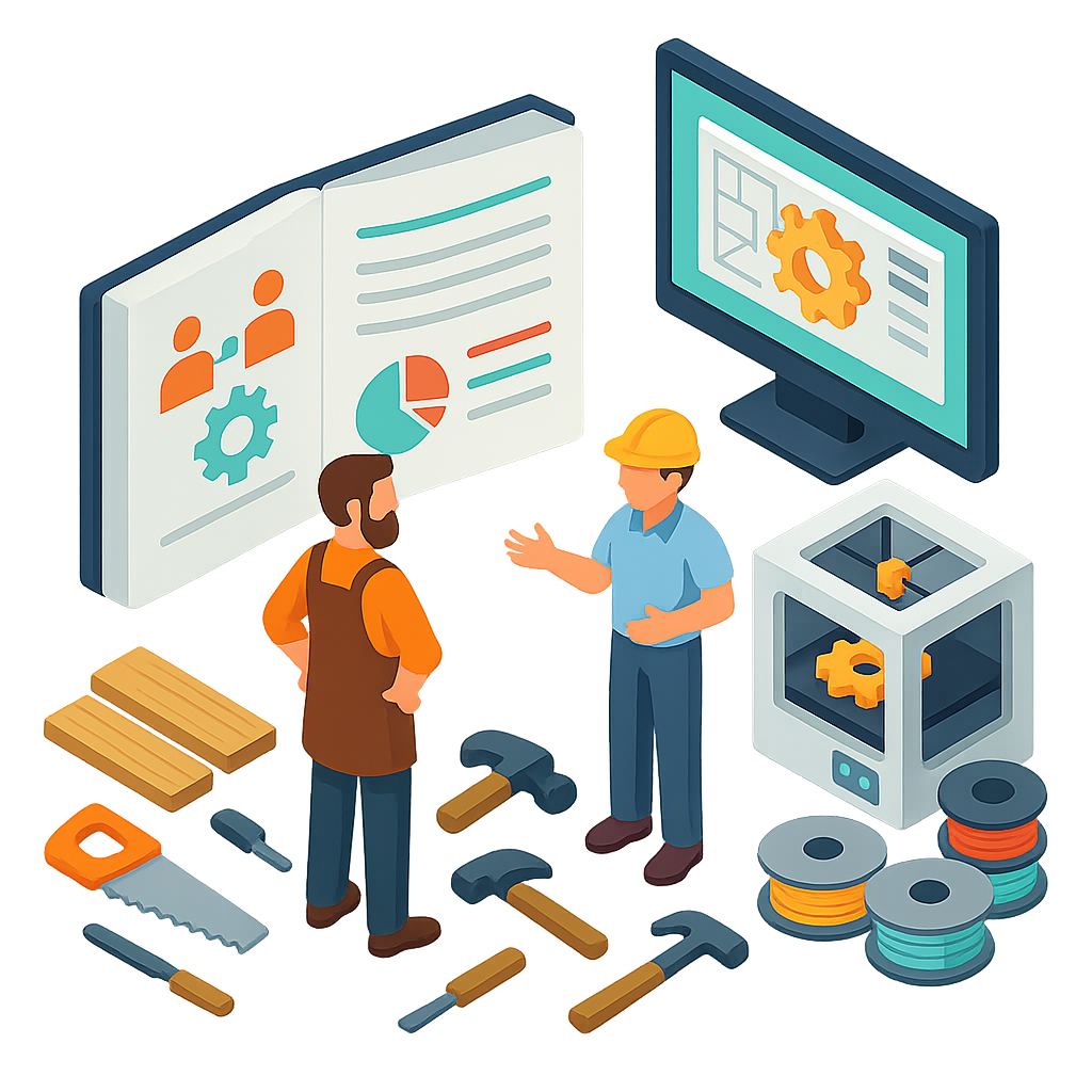 Aims to provide a structured, transferable model for setting up and implementing a mentorship programme within the context of vocational education and training (VET). It offers a practical and adaptable framework for educators, coordinators, training centres, and other stakeholders interested in supporting mutual learning between traditional craftspeople and digital fabrication experts.